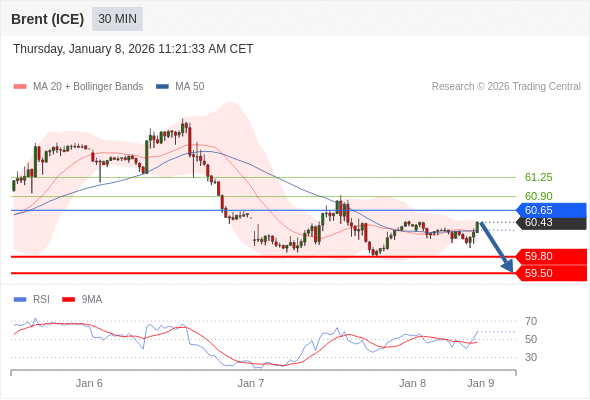在 60.65 之下,看跌,目标价位为 59.80 ,然后为 59.50 。