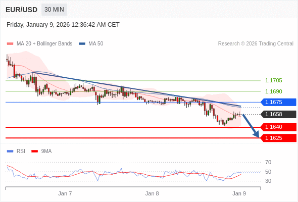 在 1.1675 之下,看跌,目标价位为 1.1640 ,然后为 1.1625 。
