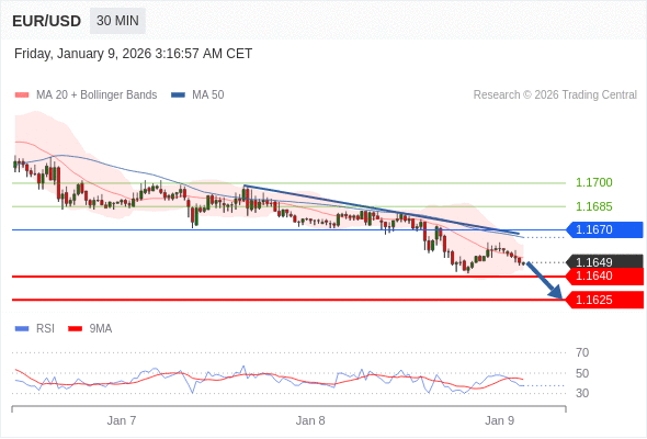 交易策略: 在 1.1670 之下,看跌,目标价位为 1.1640 ,然后为 1.1625 。