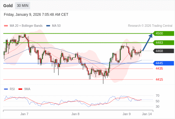 交易策略: 在 4445 之上,看涨,目标价位为 4483 ,然后为 4500 。