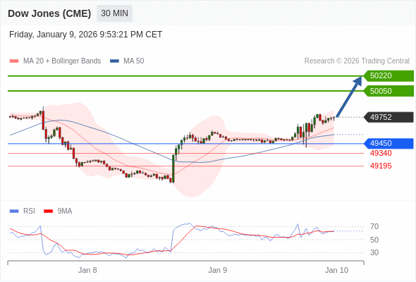 在 49450 之上,看涨,目标价位为 50050 ,然后为 50220 。