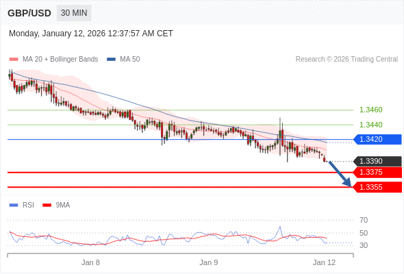 在 1.3420 之下,看跌,目标价位为 1.3375 ,然后为 1.3355 。