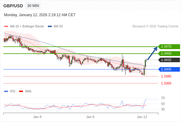在 1.3405 之上,看涨,目标价位为 1.3450 ,然后为 1.3470 。