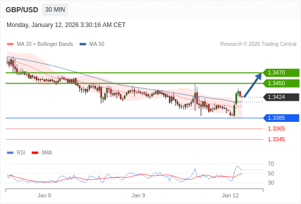在 1.3385 之上,看涨,目标价位为 1.3450 ,然后为 1.3470 。