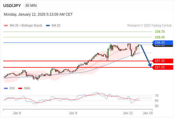 在 158.20 之下,看跌,目标价位为 157.35 ,然后为 157.05 。