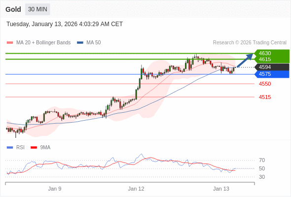 在 4575 之上,看涨,目标价位为 4615 ,然后为 4630 。