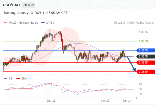 在 1.3885 之下,看跌,目标价位为 1.3865 ,然后为 1.3850 。