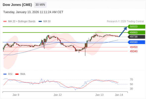 在 49590 之上,看涨,目标价位为 49860 ,然后为 50020 。