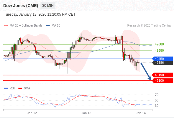 在 49450 之下,看跌,目标价位为 49190 ,然后为 49100 。