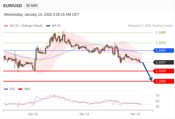 在 1.1660 之下,看跌,目标价位为 1.1620 ,然后为 1.1600 。