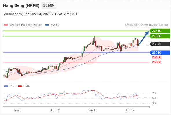 在 26750 之上,看涨,目标价位为 27180 ,然后为 27310 。