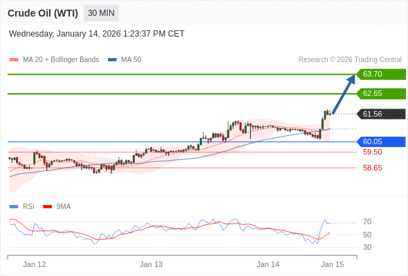 在 60.05 之上,看涨,目标价位为 62.65 ,然后为 63.70 。