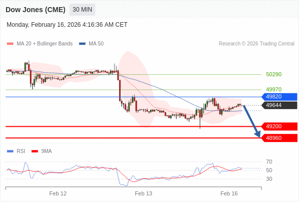交易策略: 在 49820 之下,看跌,目标价位为 49200 ,然后为 48960 。