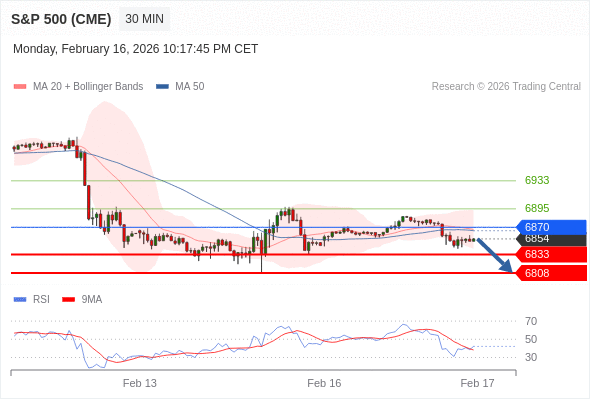 美国标普500指数期货 (H6) 当日内: 短期关键阻力位在6870。