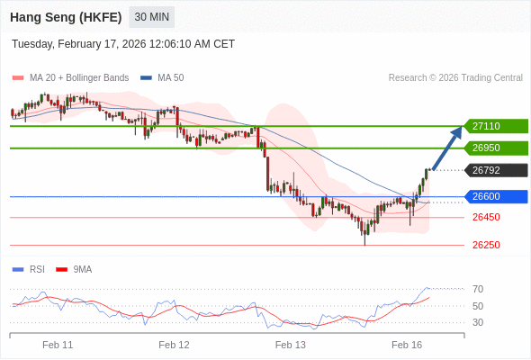 在 26600 之上,看涨,目标价位为 26950 ,然后为 27110 。