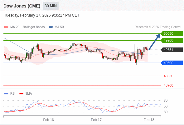 在 49300 之上,看涨,目标价位为 49900 ,然后为 50080 。