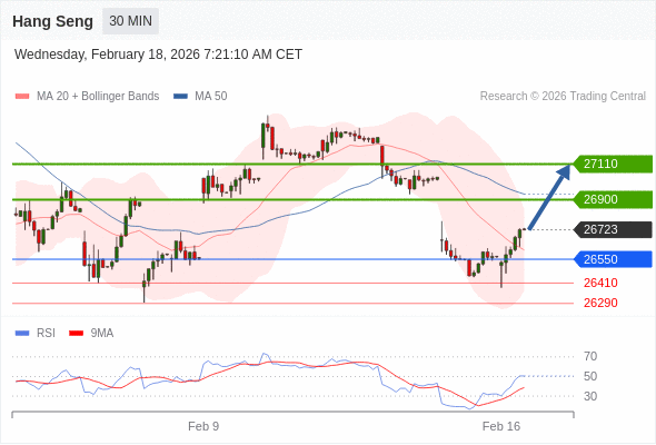 在 26550 之上,看涨,目标价位为 26900 ,然后为 27110 。