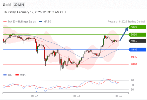 在 4940 之上,看涨,目标价位为 5010 ,然后为 5045 。