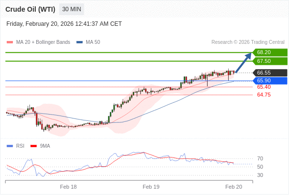 在 65.90 之上,看涨,目标价位为 67.50 ,然后为 68.20 。