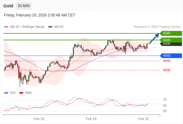在 4960 之上,看涨,目标价位为 5020 ,然后为 5045 。