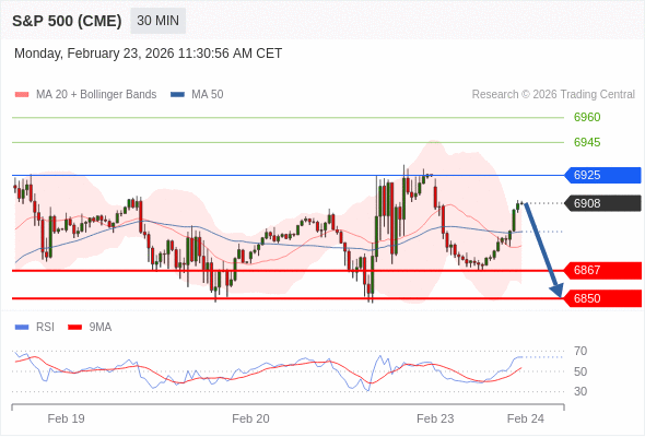 在 6925 之下,看跌,目标价位为 6867 ,然后为 6850 。