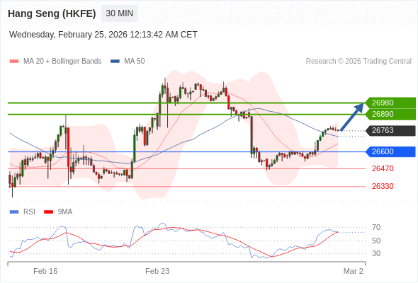 在 26600 之上,看涨,目标价位为 26890 ,然后为 26980 。