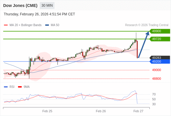 在 49200 之上,看涨,目标价位为 49720 ,然后为 49900 。