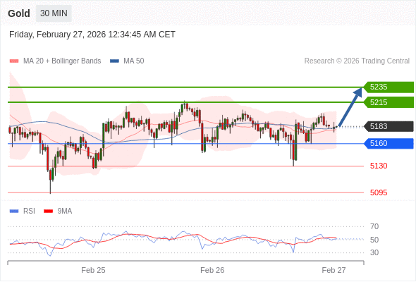 在 5160 之上,看涨,目标价位为 5215 ,然后为 5235 。