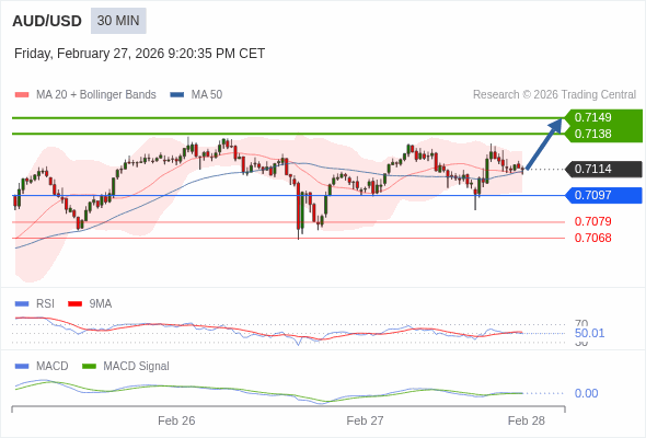 交易策略: 看涨,当 0.7097 为支撑位。