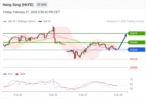 在 26450 之上,看涨,目标价位为 26640 ,然后为 26870 。