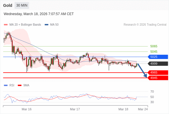 在 5025 之下,看跌,目标价位为 4965 ,然后为 4945 。