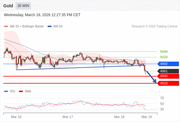 在 4992 之下,看跌,目标价位为 4940 ,然后为 4910 。