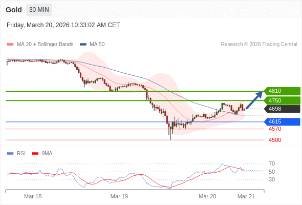 在 4615 之上,看涨,目标价位为 4750 ,然后为 4810 。