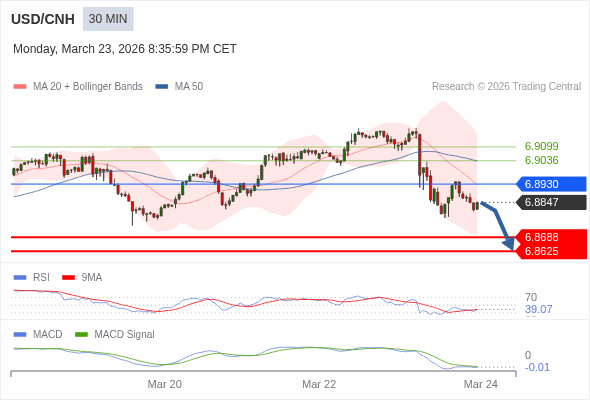 美元/人民币 当日内 : 看跌,在 6.8930 之下。