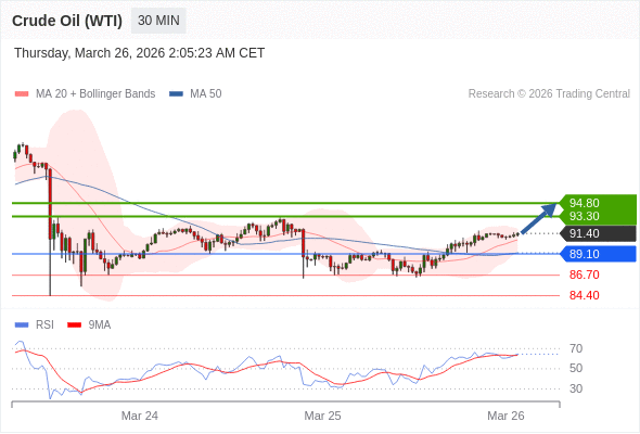 在 89.10 之上,看涨,目标价位为 93.30 ,然后为 94.80 。