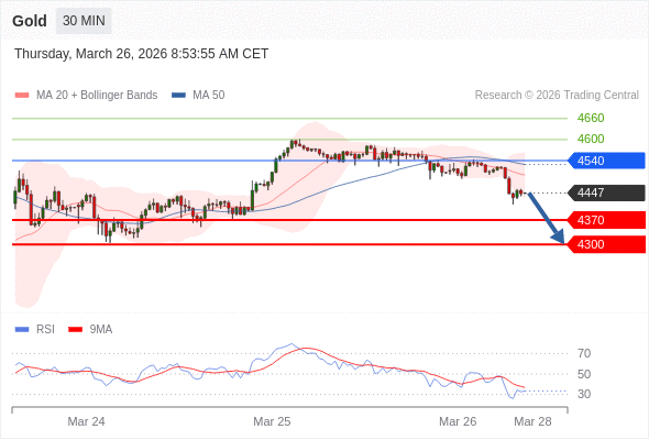 在 4540 之下,看跌,目标价位为 4370 ,然后为 4300 。