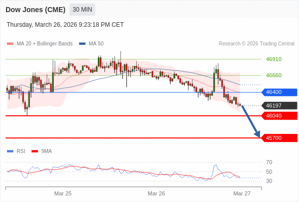 交易策略: 在 46400 之下,看跌,目标价位为 46040 ,然后为 45700 。