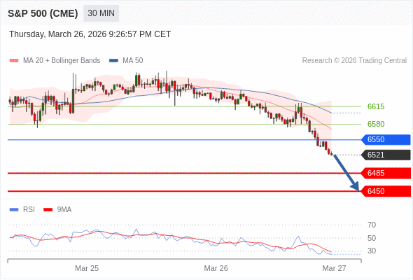 在 6550 之下,看跌,目标价位为 6485 ,然后为 6450 。