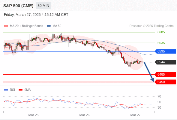 交易策略: 在 6595 之下,看跌,目标价位为 6485 ,然后为 6450 。