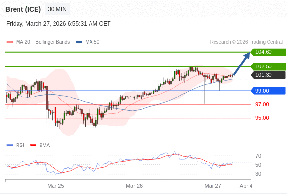 在 99.00 之上,看涨,目标价位为 102.50 ,然后为 104.60 。
