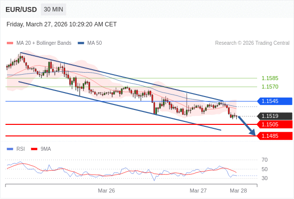 在 1.1545 之下,看跌,目标价位为 1.1505 ,然后为 1.1485 。