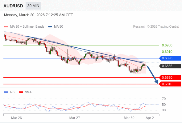在 0.6890 之下,看跌,目标价位为 0.6830 ,然后为 0.6810 。