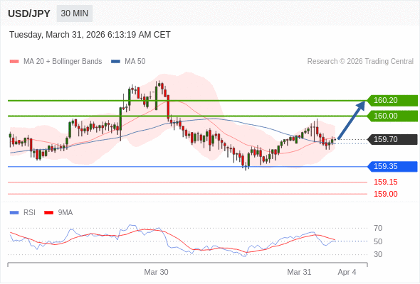 在 159.35 之上,看涨,目标价位为 160.00 ,然后为 160.20 。