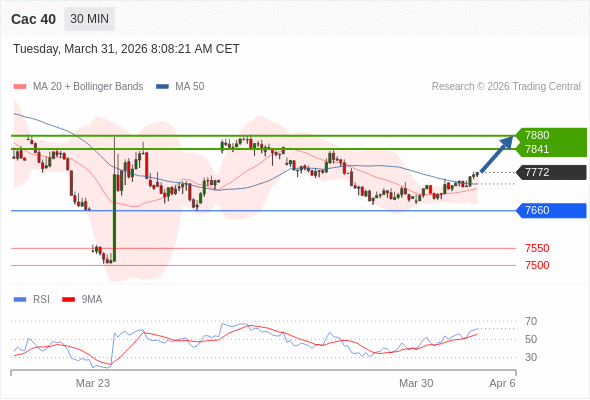 在 7660 之上,看涨,目标价位为 7841 ,然后为 7880 。