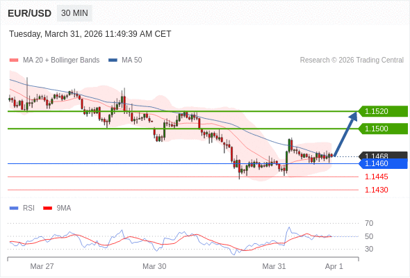 交易策略: 在 1.1460 之上,看涨,目标价位为 1.1500 ,然后为 1.1520 。
