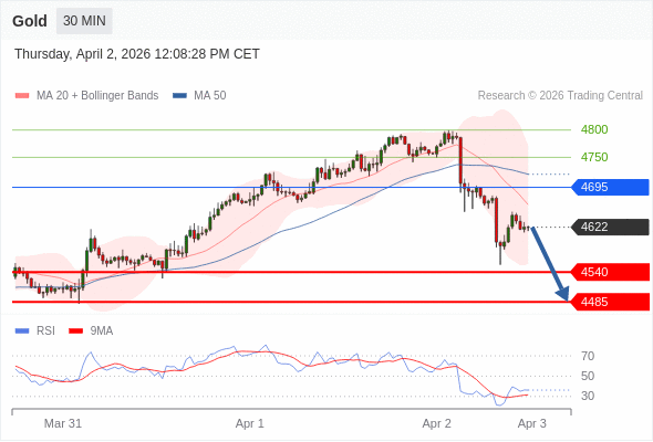 在 4695 之下,看跌,目标价位为 4540 ,然后为 4485 。
