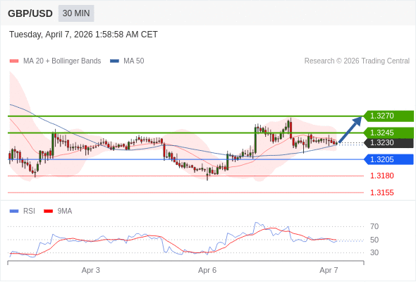 在 1.3205 之上,看涨,目标价位为 1.3245 ,然后为 1.3270 。