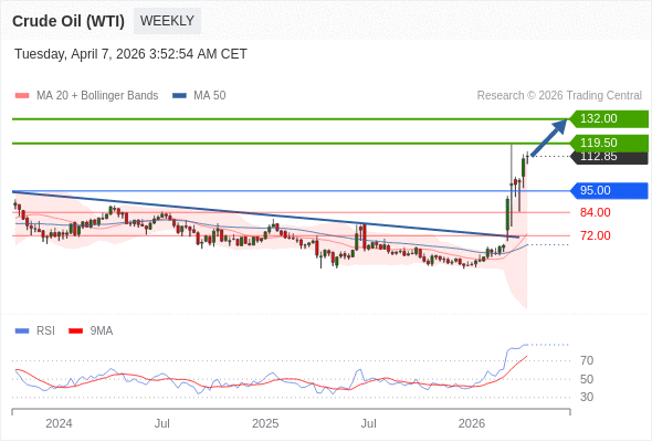 交易策略: 在 95.00 之上,看涨,目标价位为 119.50 ,然后为 132.00 。