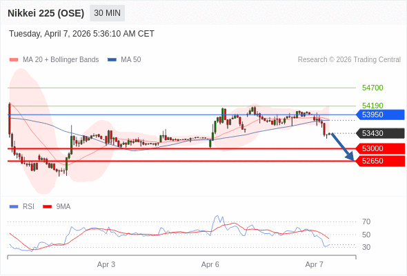 在 53950 之下,看跌,目标价位为 53000 ,然后为 52650 。