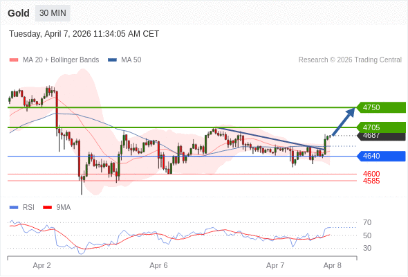 在 4640 之上,看涨,目标价位为 4705 ,然后为 4750 。
